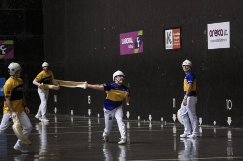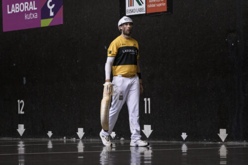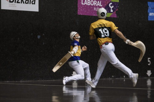Argazkia: Eraman Jai Alai Iragan asteleheneko [otsailak 2] partiduak erabakita utzi zituen Eusko Label Winter Serieseko bikote finalistak, baina horrek ez zion emoziorik kendu atzo jokatu zuten [otsailak 9] azken finalaurrekoari. Izan ere, erabakitzear zegoen domekako final handian [otsailak 15] Xabi Barandika aurrelari gernika-lumotarra nork ordezkatuko zuen —ezker olekranona apurtuta du eta eguenean operatu zuten—, Thibault Basque bidartarragaz bikotea osatuz. Hori gutxi balitz, Gernikako Jai Alai pilotalekuak, duela 23 urte, 2003ko uztailaren 7an debuta egiten ikusi zuen kantxak, Imanol Lopez atzelari zumaiarra agurtu zuen.