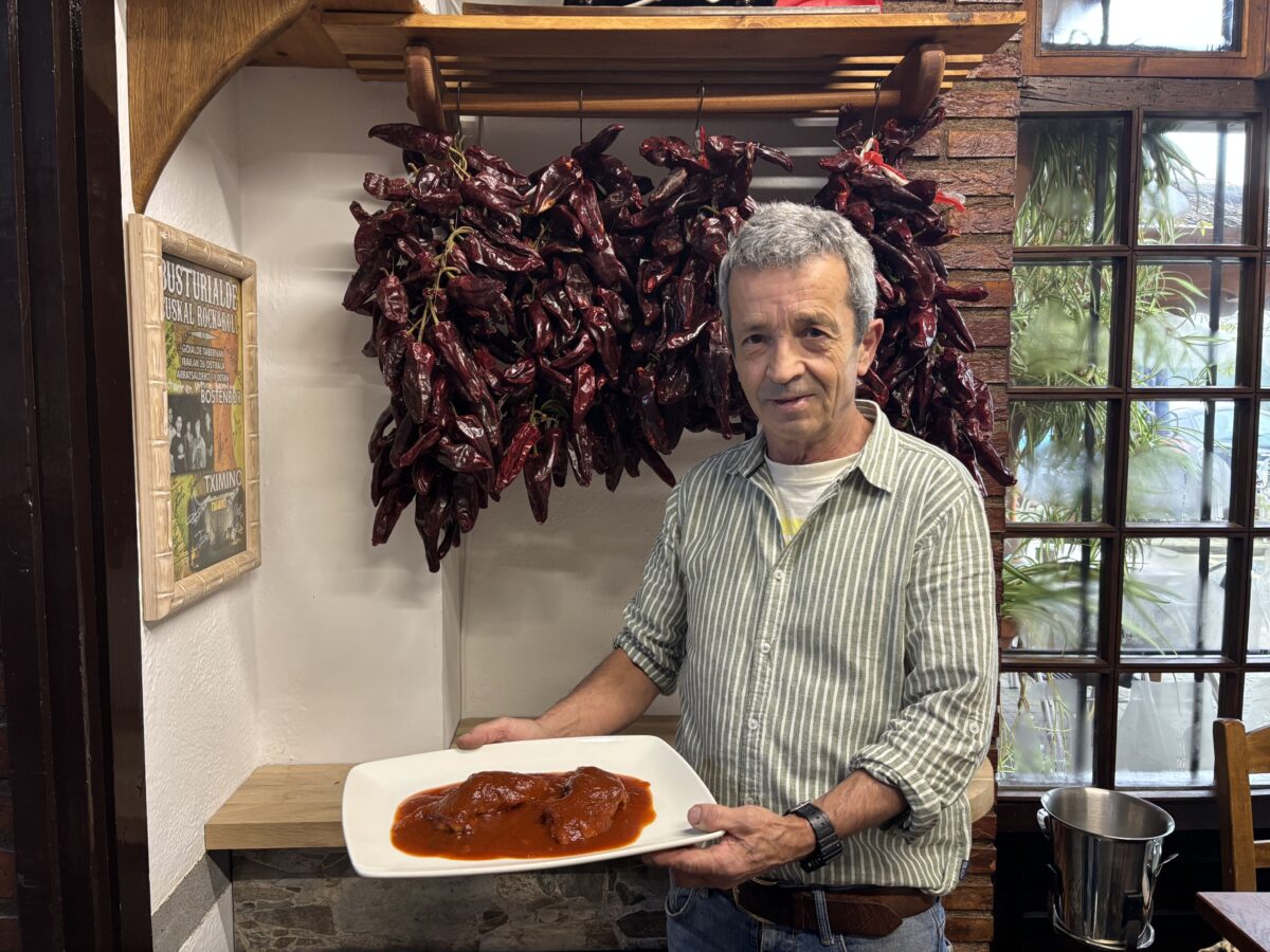 Itsaskiak, arrainak, okelak, barazkariak… ia denetarik lantzen du Francisco Javier Martinez Mintegik Busturiko Goialde tabernan. Gaur, sei txerri hanka bizkaitar saltsa «puruan» prestatzeko errezeta azaldu digu. Errezeta “sinplea bezain gozoa” dio.