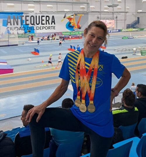 Argazkia: Inma Ruiz. Inma Ruizek iragan asteburuan egin zuen debuta F65 adin taldean, non eta goi mailako atletarik puntakoenen artean: Espainiako Txapelketan. 65 eta 69 urte bitartekoetan debuta egin ez ezik, pista estaliko master mailako txapelketa horretan lehiatu zituen hiru probetan nahieran nagusitu zen atleta gernika-lumotarra, eta, erabateko dominantziaz, hiru urrezko domina poltsikoratu ahal izan zituen.