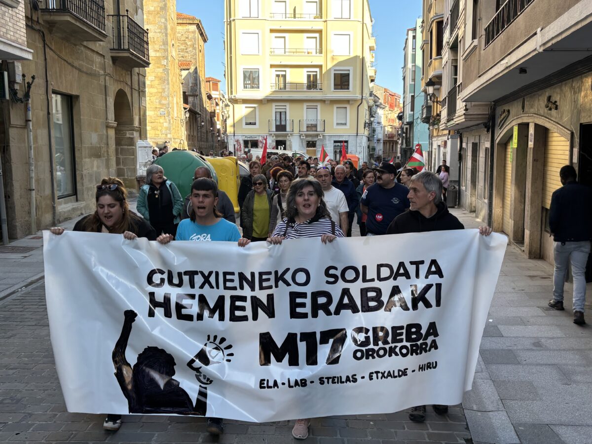 Hala, greba orokorrak “garaipen berrien atea irekitzeko balioko” duela aldarrikatu dute, gutxieneko soldata Euskal Herrian erabakitzeak mila langileren diru sarreretan zuzenean egingo lukeelako: “Lantokietan, kalean, etxean eta edonon, jarrai dezagun borrokan”.