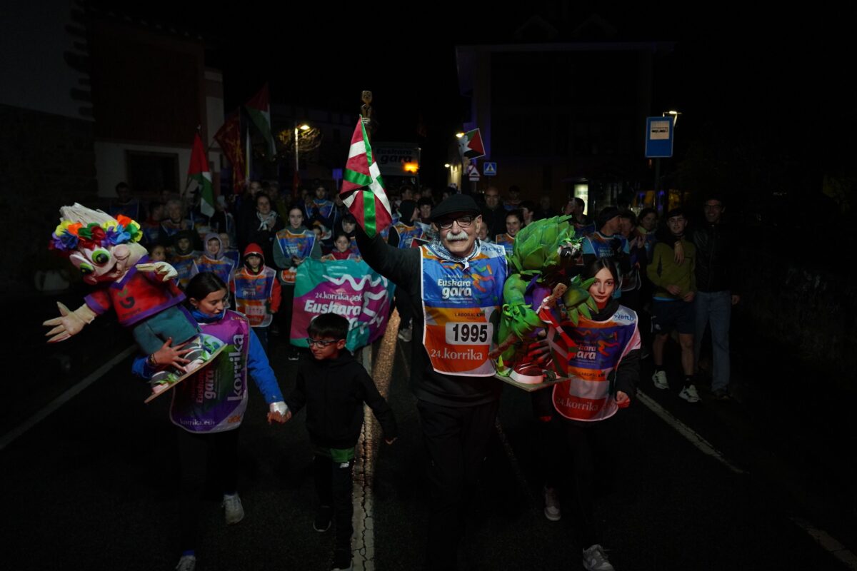 Euskarak behar ditu kilometroak, behar ditu metroak, behar ditu zentimetroak. Eta zentimetro horietako bakoitza bueltatu diote ama hizkuntzari Busturialdeko herritarrek. Bedaronatik San Pelaio tontorrera, 24. Korrikaren lekukoak gordeleku eta arnasgune egoki askoak topatu ditu eskualdean, eta han-hemengo 149 elkarte, eragile talde, udal, batzorde, norbanako eta lekuko eroalek eskutik eskura garraio eroan dute euskararen babeserako hautua. 02:30ak orduko sartu da euskarren aldeko karabana erraldoia Busturialdean, eta 06:30ak bueltan gurutzatu du Bakiorako muga.