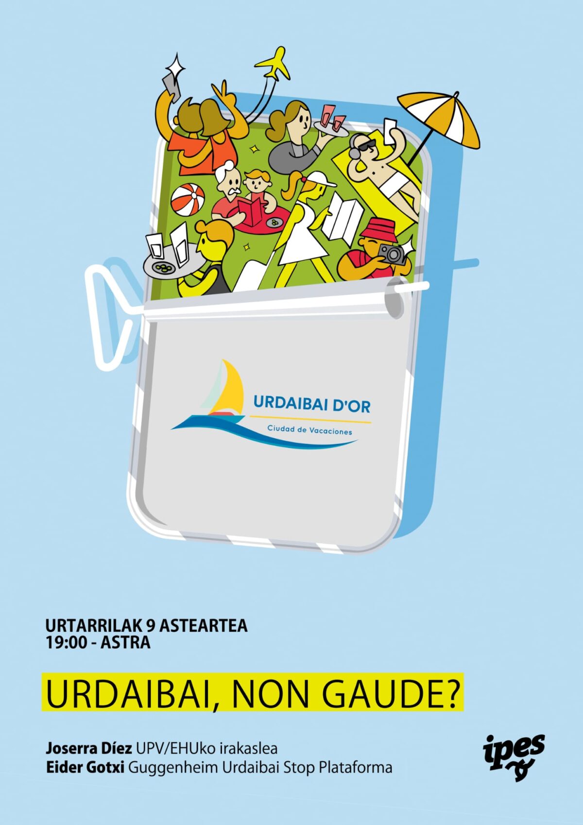 Gernika-Lumo. Ipesek deituta, Urdaibai, Non gaude? hitzaldia eskainiko dute Joserra Diez EHUko irakasleak eta Eider Gotxi Guggenheim Urdaibai Stop Plataformako kideak urtarrilaren 9an [martitzena], 19:00etan, Gernika-Lumoko Astran.