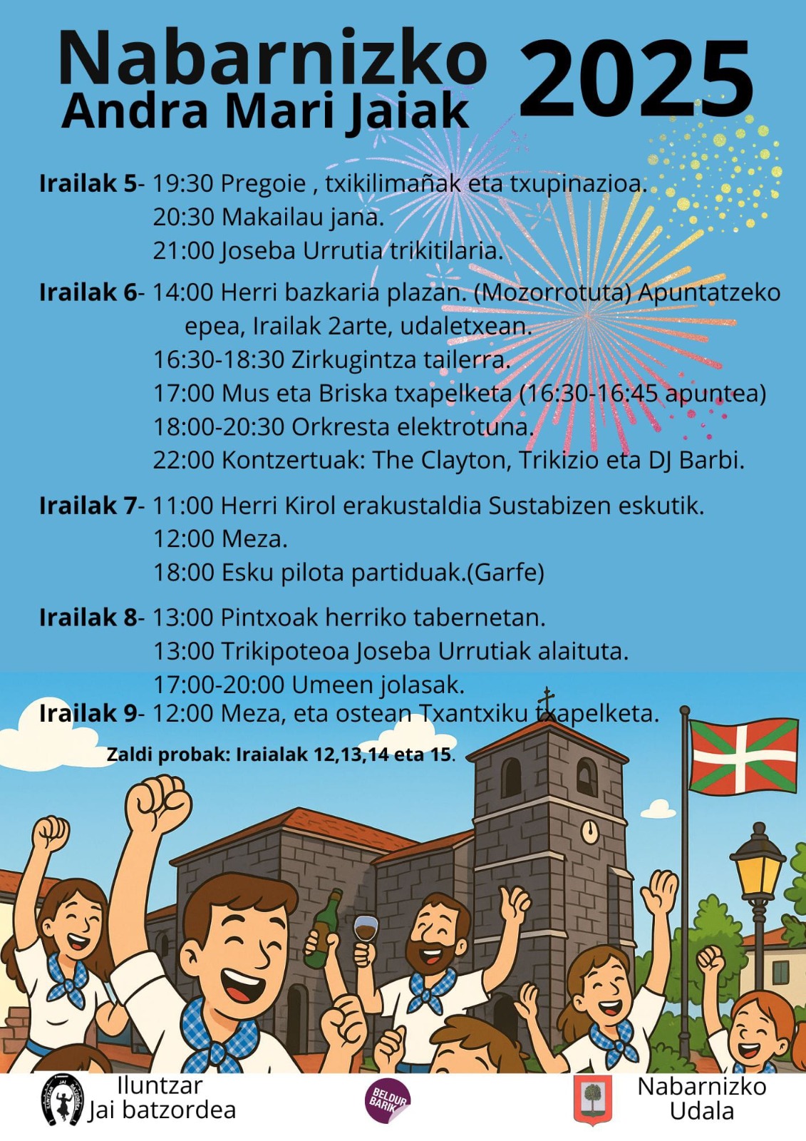 Nabarniz. Nabarnizko andramari jaiek adin eta gustu guztietako jendearentzako jarduerak dakartzate, irailaren 5ean (barikua) hasi eta irailaren 9ra (martitzena) arte.