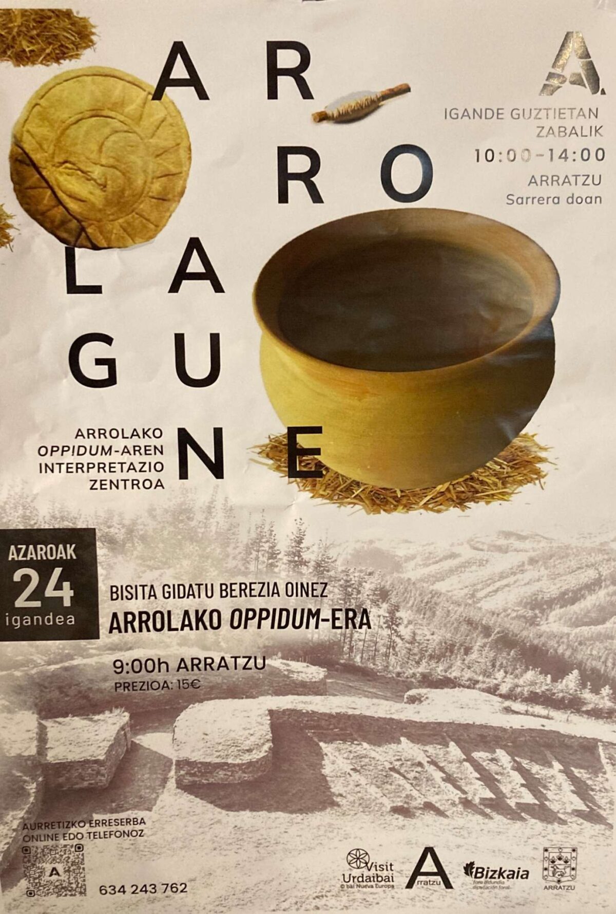 Arratzu. Arrolako Oppidumera bisita gidatu berezia, azaroaren 24an (domeka). Arratzutik aterako dira parte hartzaileak 09:00etan. Horrez gain, 10:00etatik 14:00etara egongo da zabalik Arrolako Oppidumaren Interpretazio Zentroa, doako sarreragaz.