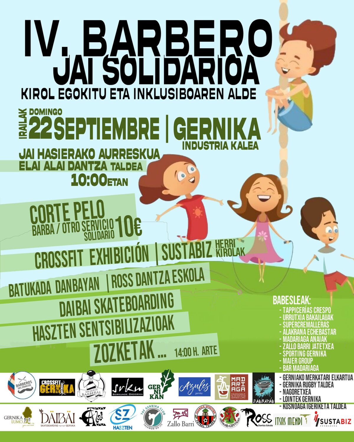 Gernika-Lumo. IV. Barbero Jai Solidarioa egingo dute irailaren 22an (domeka) Gernika-Lumoko Industria kalean. Kirol egokitu eta inklusiboaren aldeko jaia izaten da, eta aurten ere, denetariko ekintzek jantziko dute.