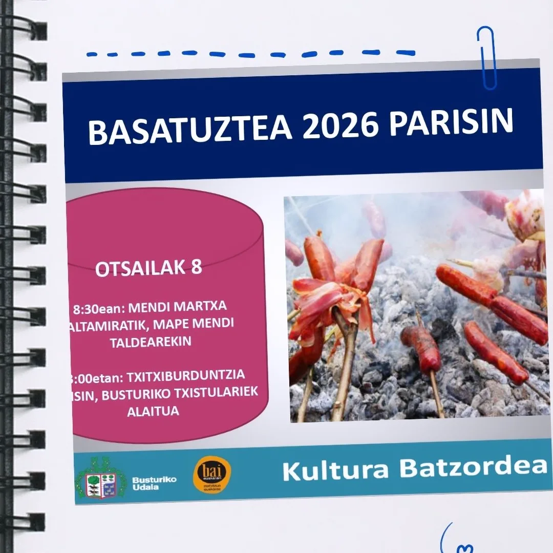 Busturia. Basatuztea ospatuko dute Parisi auzoan. Mendi martxa egingo dute lehenengo, Mape Mendi Taldearen eskutik. Ostean, txitxiburduntzia, Busturiko txistulariekin.