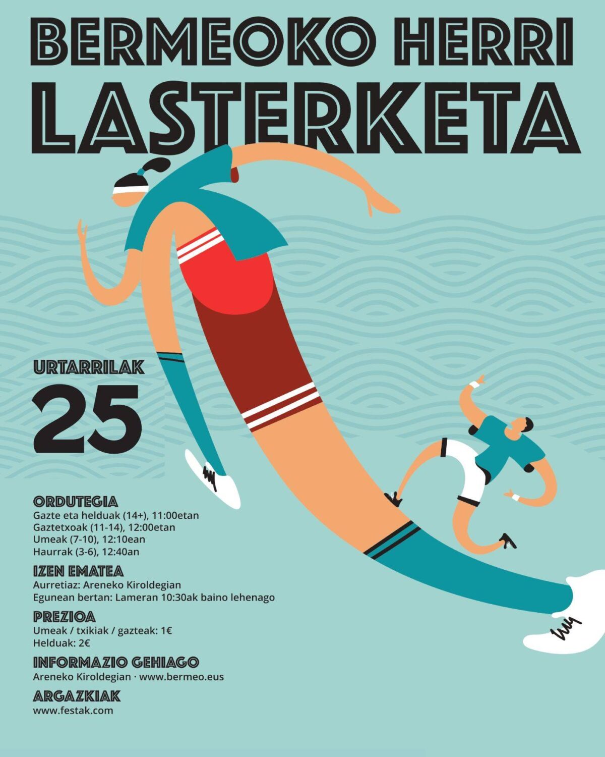 Bermeo. Bermeoko Herri Lasterkta egingo dute urtarrilaren 25ean [domeka], Bermeon. Lasterketak adin tarteka banatuta egingo dituzte: Gazte eta helduek (14 urtetik gora) 11:00etan, gaztetxoak (11-14 urte) 12:00etan, umeek (7-10 urte) 12:10ean eta haurrak (3-6 urte) 12:40an.