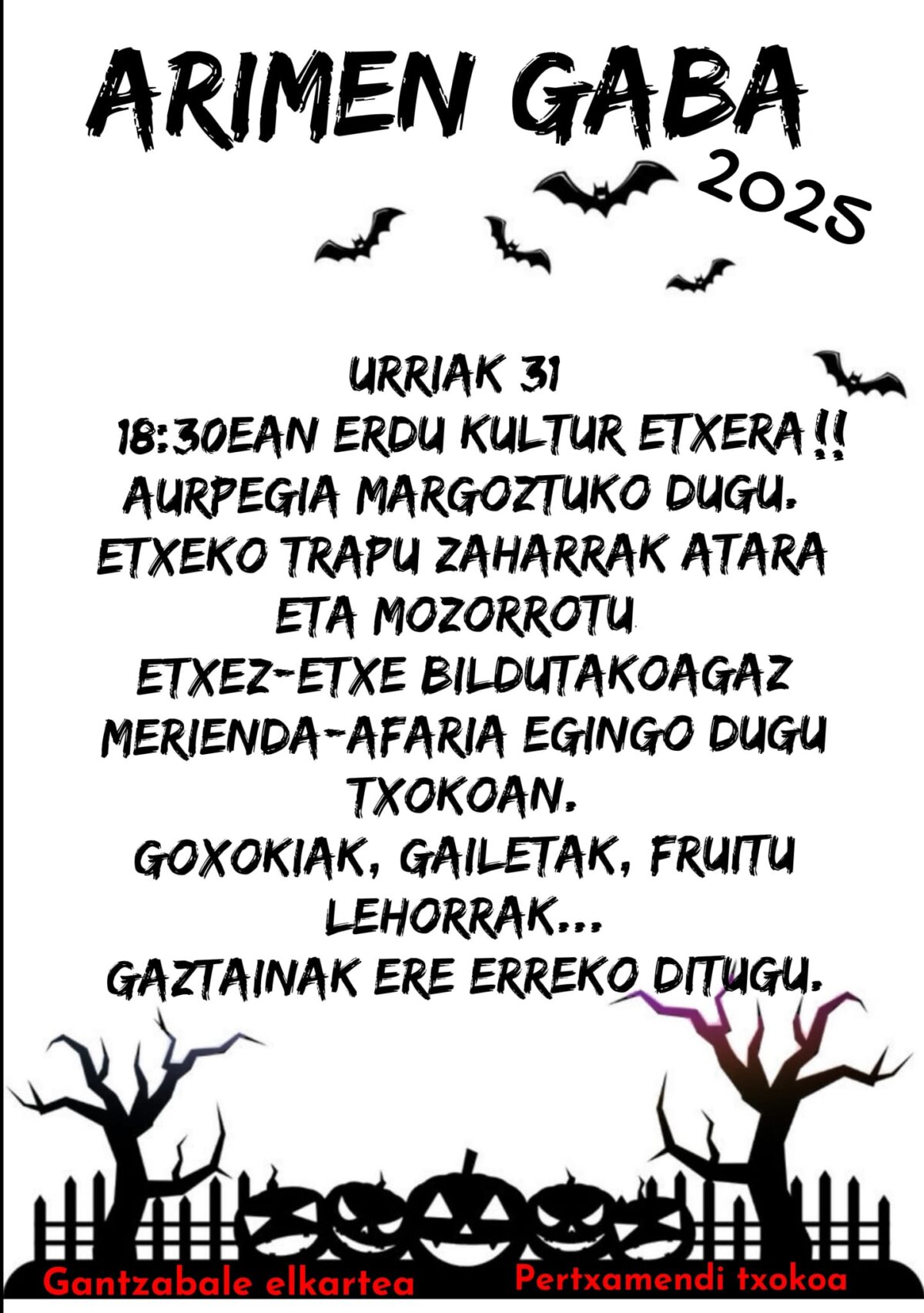 Ajangiz. Gau beltza ospatuko dute ajangiztarrek urriaren 31n [barikua], Mendietan.