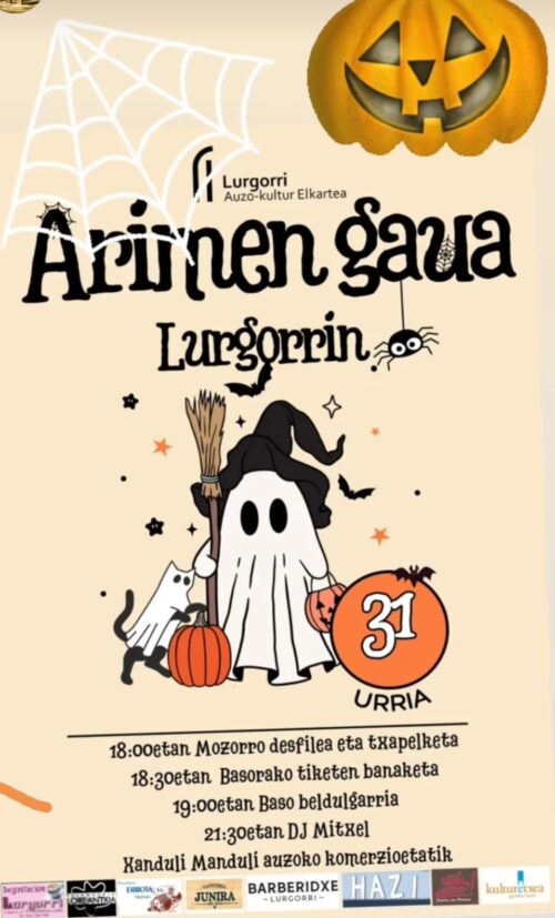 Gernika-Lumo. Gau Beltza (urriak 31) ospatzeko egitarau zabala antolatu dute Gernika-Lumon, Gernikako Merkatari Elkartuek eta Lurgorri Auzo-Kultur Elkarteak.