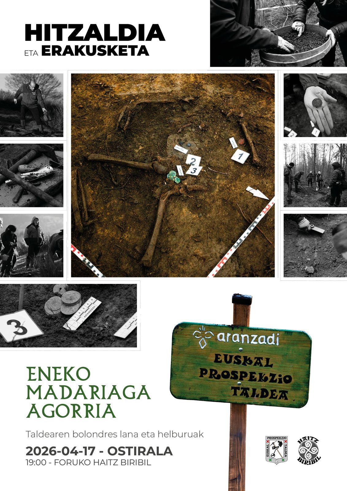 Forua. Haitz Biribil Elkarteak eta Euskal Prospekzio Taldeak antolatuta, Eneko Madariaga Agorriak Euskal Prospekzio Taldearen lan boluntarioa eta taldearen helburuak azalduko ditu, apirilaren 17an [barikua], 19:00etan, Haitz Biribilen lokalean. Erakusketa ikusteko aukera ere egongo da.