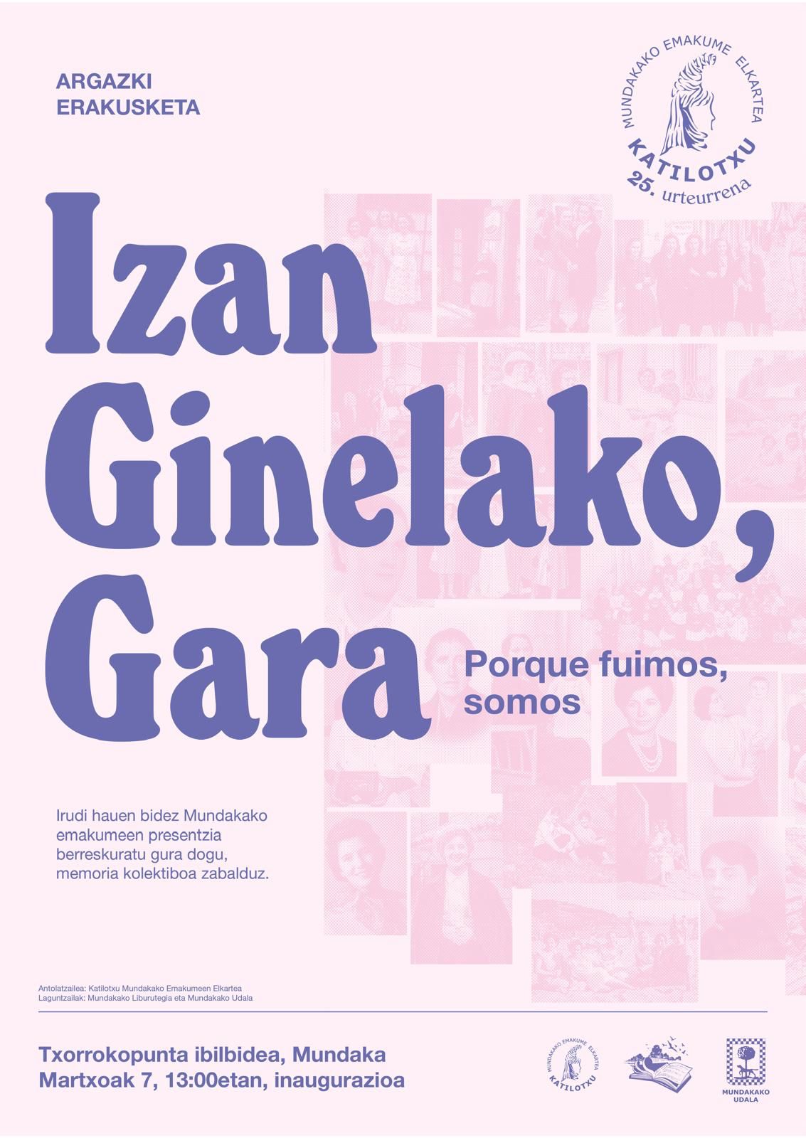Mundaka. Izan ginelako, gara erakusketa inauguratuko dute martxoaren 7an (zapatua), 13:00etan, Txorrokopuntako ibilbidean, Katillotxu Mundakako Emakume Elkarteak antolatuta. Irudi horien bitartez, Mundakako emakumeen presentzia berreskuratu gura dute, “memoria kolektiboa zabalduz”.
