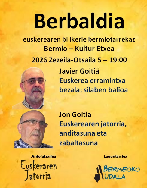 Javier Goitiak Euskerea erramintxa bezala: silaben balioa hitzaldia eskainiko du, eta Jon Goitiak, berriz, Euskerearen jatorria, anditasuna eta zabaltasuna.