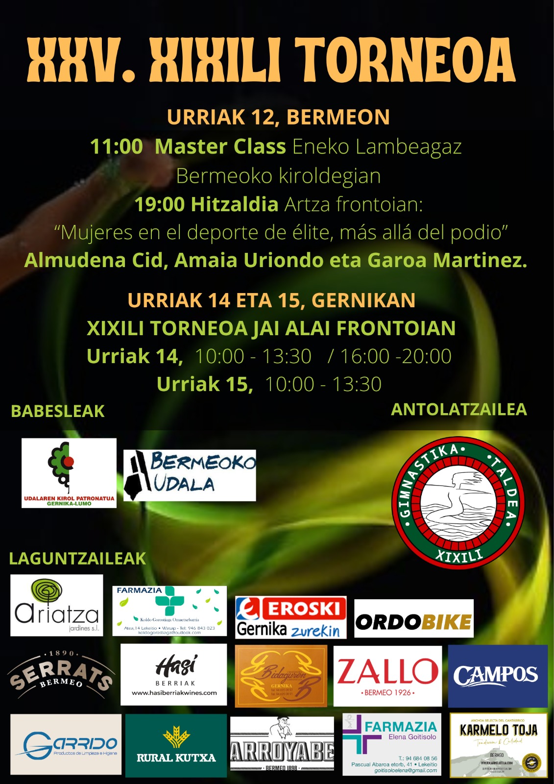 Bermeo. Urriaren 12an, 19:00etan, Artza pilotalekuak Las mujeres en el deporte de élite, más allá del podio berbaldia hartuko du. Doako sarreragaz, Almudena Cid, Amaia Uriondo eta Garoa Martinez izango dira hizlariak. Egitasmoa Xixili Torneoaren barruan kokatuta dago.
