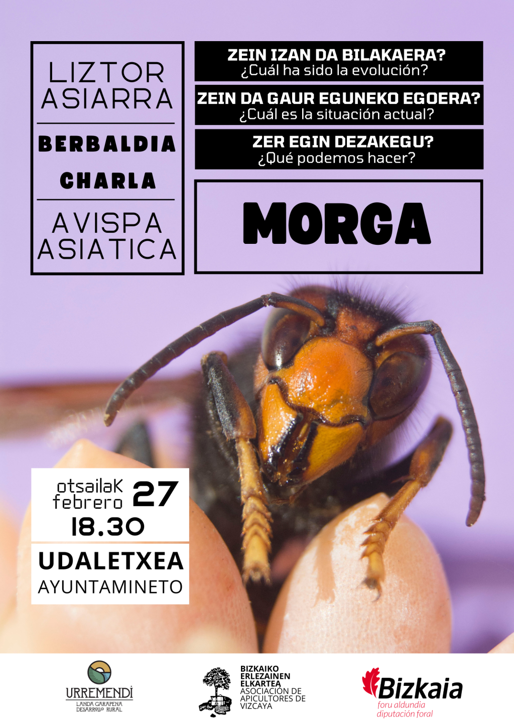 Morga. Liztor asiarrari aurre egiten ikasteko hitzaldi informatiboak eskainiko ditu Urremendik Morgan, Ereñon, Gautegiz Arteagan, Ajangizen eta Sukarrietan. Morgan, otsailaren 27an jarri dute hitzordua, 18:30ean, udaletxean.