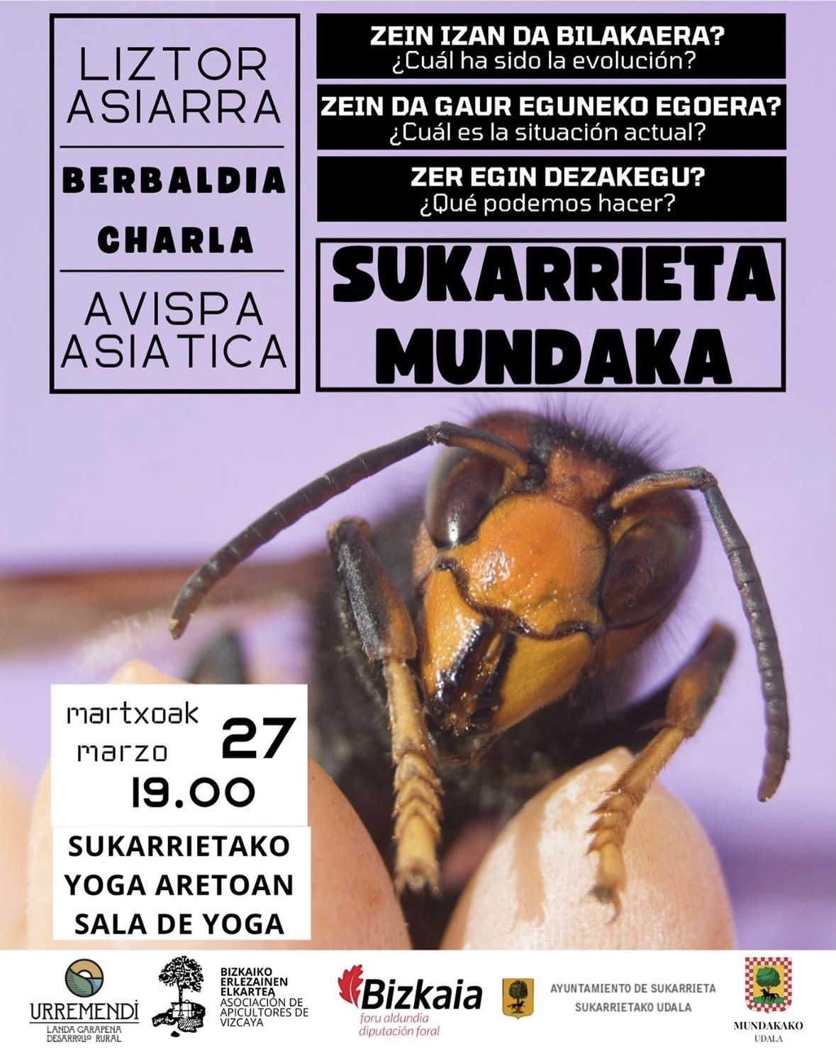 Screenshot Sukarrieta/Mundaka. Liztor asiarrari buruzko berbaldia eskainiko dute martxoaren 27an (barikua), 19:00etan, Sukarrietako yoga aretoan. Saioan liztor asiarraren bilakaera, egungo egoera eta horien aurrean zer egin daitekeen azalduko dute, Mundakako eta Sukarrietako Udalak deituta.