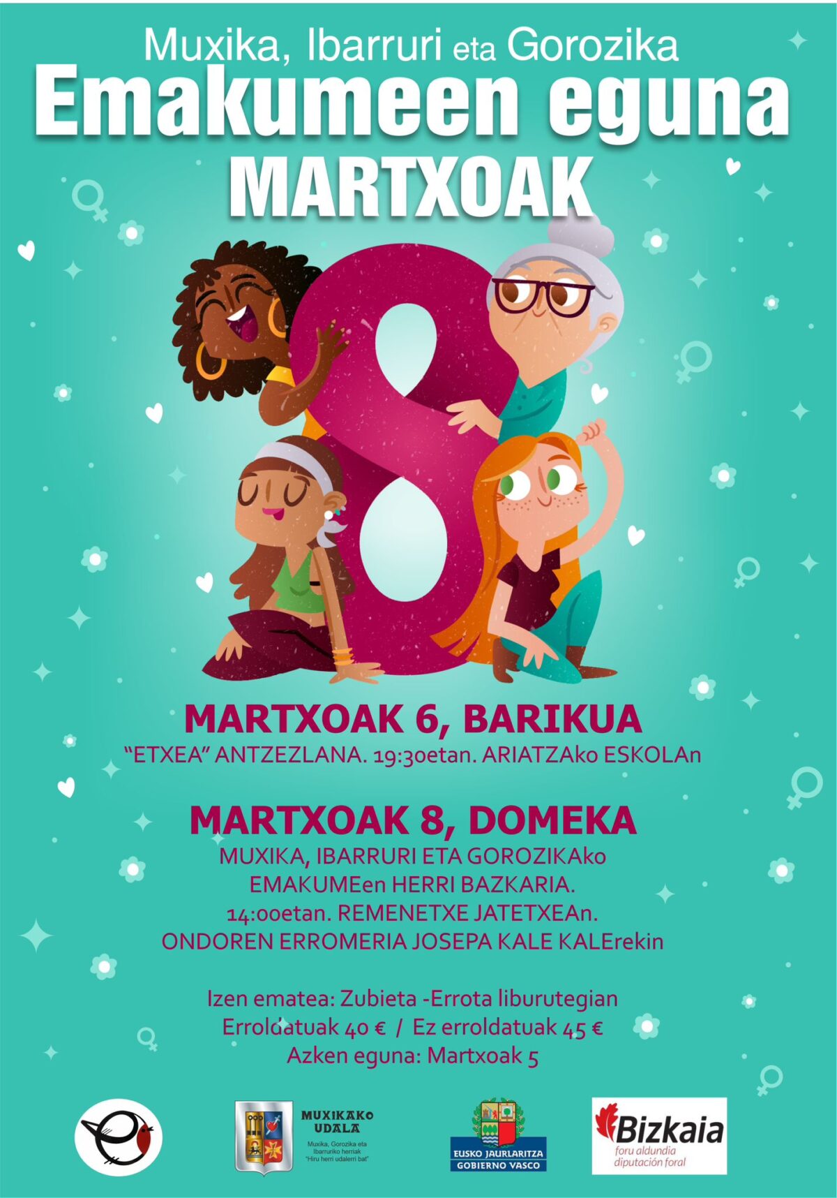 Martxoaren 6an (barikua), 19:30ean, Ariatzako eskolan bilduko dira Etxea antzezlana ikusteko, baina, martxoaren 8an bertan, Muxikako, Ibarruriko eta Gorozikako emakumeak herri bazkarian elkartuko dira, 14:00etan. Ondoren, erromerian bilduko dira Josepa Kale Kalegaz.