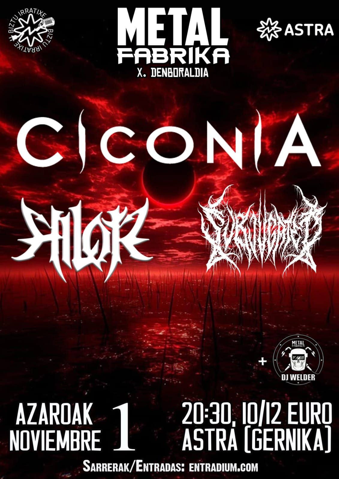 Gernika-Lumo. Metalfabrikaren X. denboraldiari ekingo diote azaroaren 1ean (zapatua), 20:30ean hasita. Valladolidetik Ciconia taldekoak bertaratuko dira, euren Prog-Modern metalarekin, eta, Euskal Herritik bueltan etorko dira Hiloitz taldekoak. Gainera, Subjugated brutal death taldekoak ere igoko dira oholtzara; azken horiek eskarmentu handiko partaideak dituzte, Canivorous Voracity, Virulency, Putrid Torso edo Nekrocake bezalako taldeetan egondakoak.