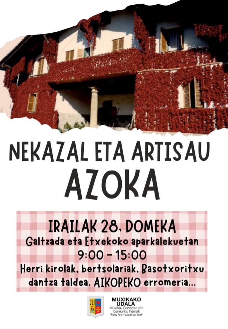 Muxika. Nekazal eta Artisau Azoka irailaren 28an (domeka), 09:00etatik 15:00etara, Galtzada eta Etxekoko aparkalekuan. Herri kirol erakustaldia, Baso Txoritxu Dantza Taldea eta Aikopeko erromeria eta bertsolariak egongo dira.