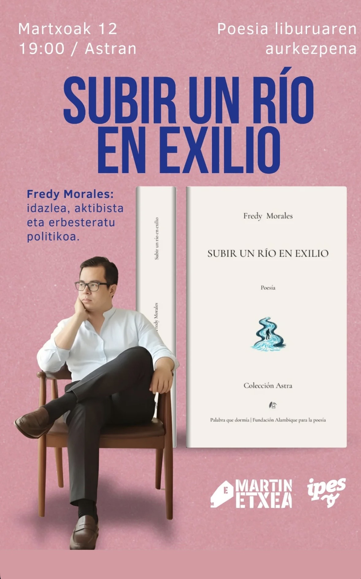Screenshot Gernika-Lumo. Fredy Morales idazle, aktibista eta erbesteratu politikoaren Subir un río en exilio poesia liburuaren aurkezpena egingo dute martxoaren 12an [eguena], 19:00etan, Astran.