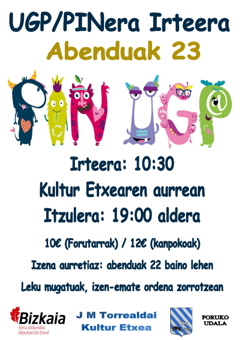 Forua. Forutik BECeko Umeen Gabonetako Parkera irteera egingo dute abenduaren 23an [martitzena]. Irteera ordua 10:30ean finkatu dute, eta itzulerakoa, 19:00etan. Foruarrek 10 euro ordaindu beharko dituzte eta gainerakoek, 12 euro. Izen ematea abenduaren 22a [astelehena] aurretik egin beharko da, eta leku mugatuak daudenez, esleipena izen emate ordena jarraituz egingo dute.