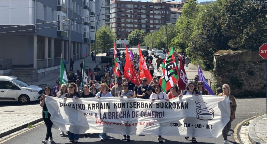 LAB, ELA, UGT eta CCOO sindikatuek deituta, Bizkaiko kontserba eta arrain gazituen sektoreko langileak manifestazioan batu dira gaur Bermeon, patronalak lan hitzarmenaren negoziazioa "blokeatuta" duela salatzeko.