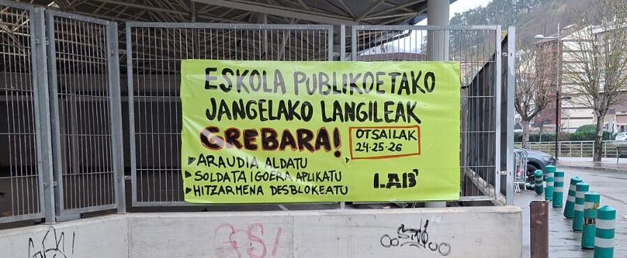 Arabako, Bizkaiko eta Gipuzkoako eskola publikoetako jangeletako langileek greba egingo dute otsailaren 24, 25 eta 26an. "Soldata igoerak aplikatu eta ratioak, funtzioak eta lanaldiak hobetzeko" eskatu diote patronalari.