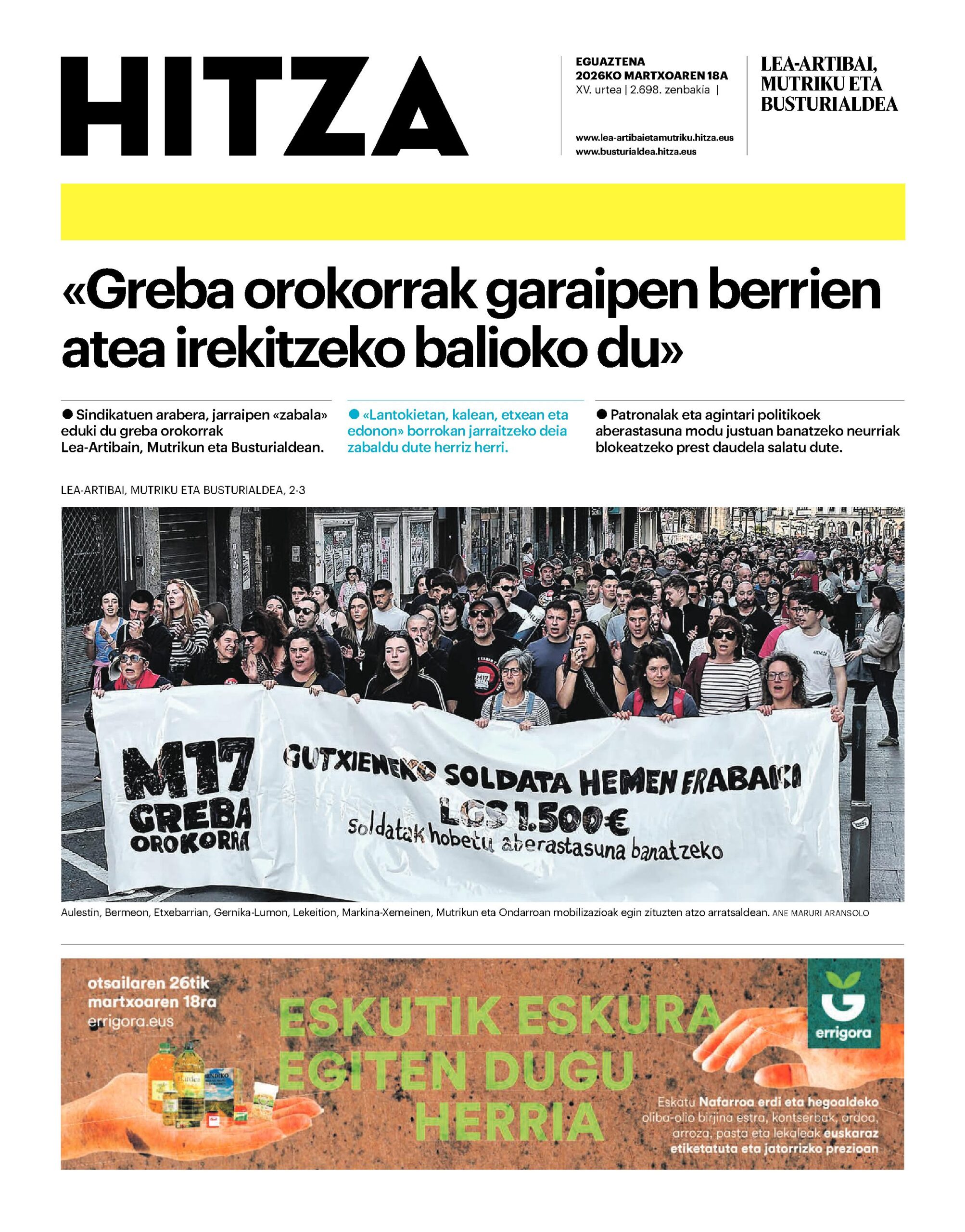 Tokiko informazioa profesionaltasunez eta euskaratik, modu librean kontatzea da gure eginkizuna. Horretarako zure ekarpena beharrezkoa da, eta ongi maitatzeko modurik zintzoena da HITZAkide egitea.